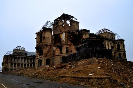 Located just ten miles from the main city of Kabul, the building was set on fire during the Communist coup of 1978. It was damaged again as rival Mujahideen factions fought for control of Kabul during the early 1990s. Heavy shelling by the Mujahideen after the end of the Soviet invasion left the building a gutted ruin.